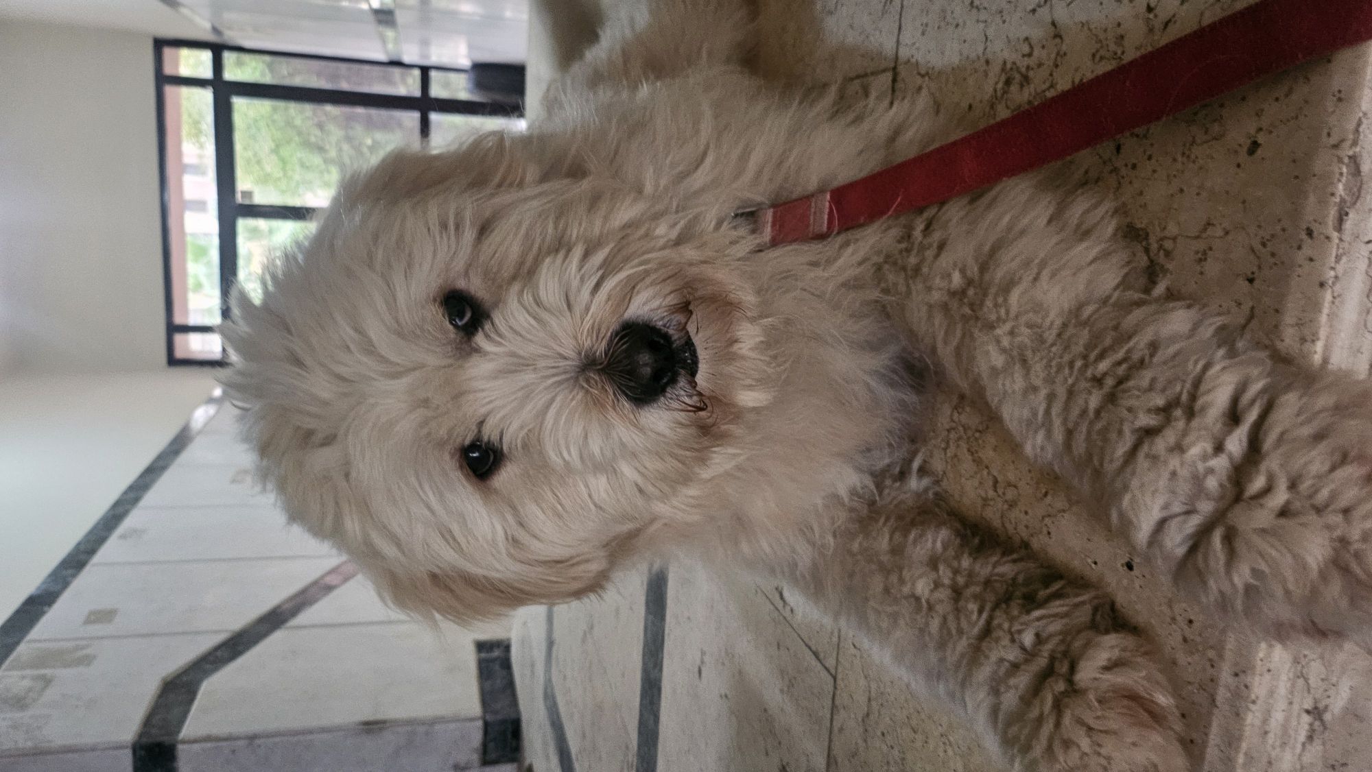 Pyredoodle كلب قمر متوسط الحجم اصغر شوية من الجولدن