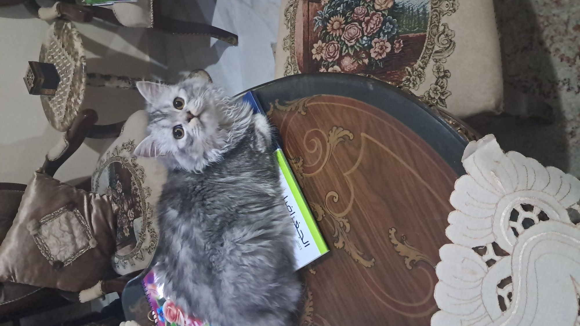 قطه رصاصي في ابيض
